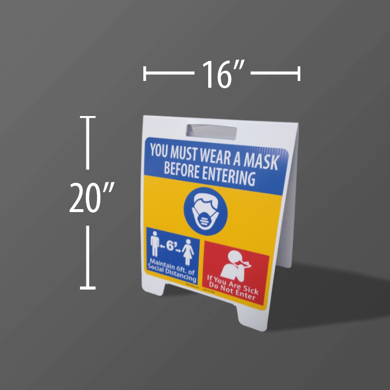 Take initiative against the spread of COVID-19 with informative guidelines for employees and customers alike. Place Fluted Plastic A-Frames at your workplace to practice and promote safe business standards. Communicate the importance of social distancing, face masks, and other sanitary measures at your company. Use signs to inform visitors and staff about COVID-19 symptoms and COVID-19 prevention to keep your community safe!
